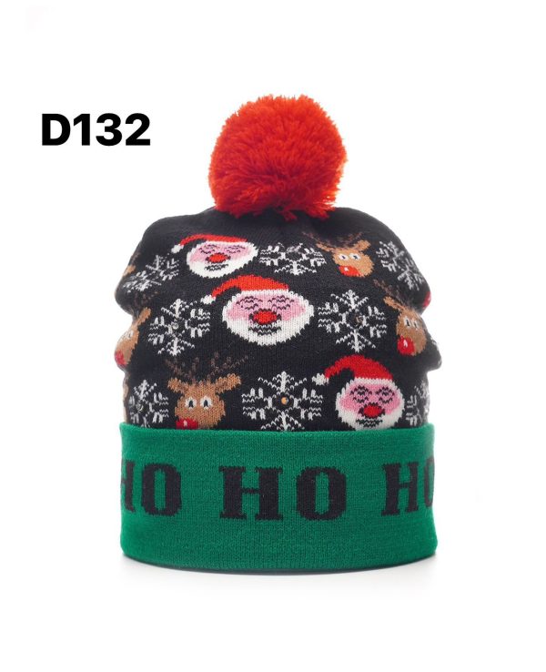 Gorro Navideño con diseño de renos y pompón