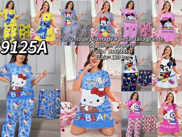 Pijama de 4 piezas con diseños animados