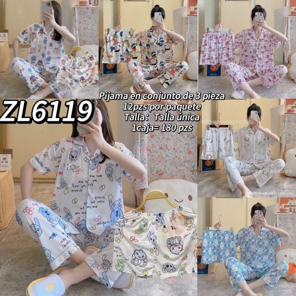 Pijama de tres piezas con estampados