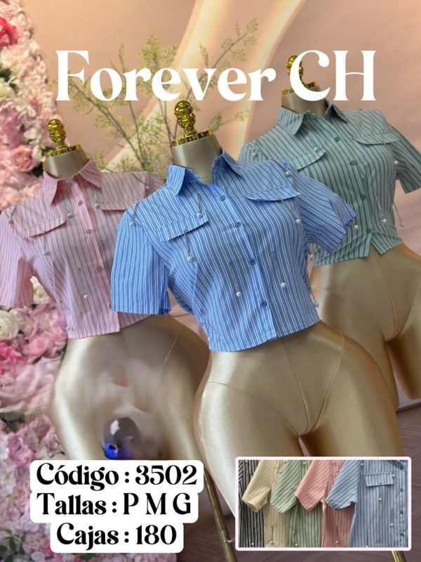Camisa corta de rayas con detalles de perlas