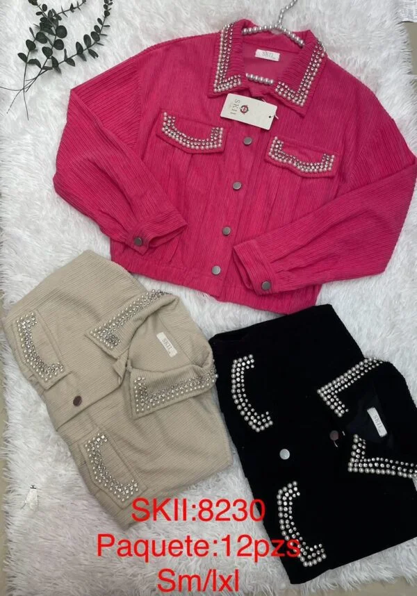Chamarra tipo pana con brillo