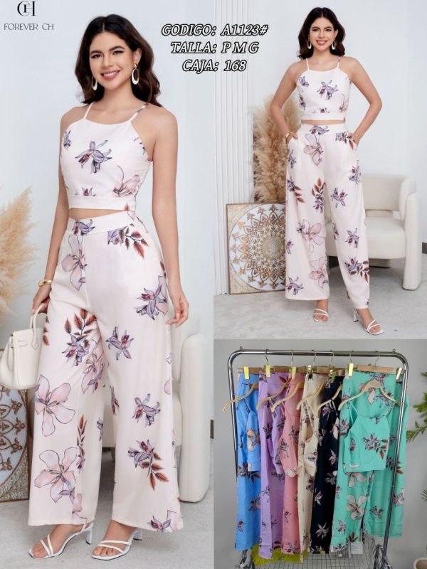Conjunto crop top y pantalón floral