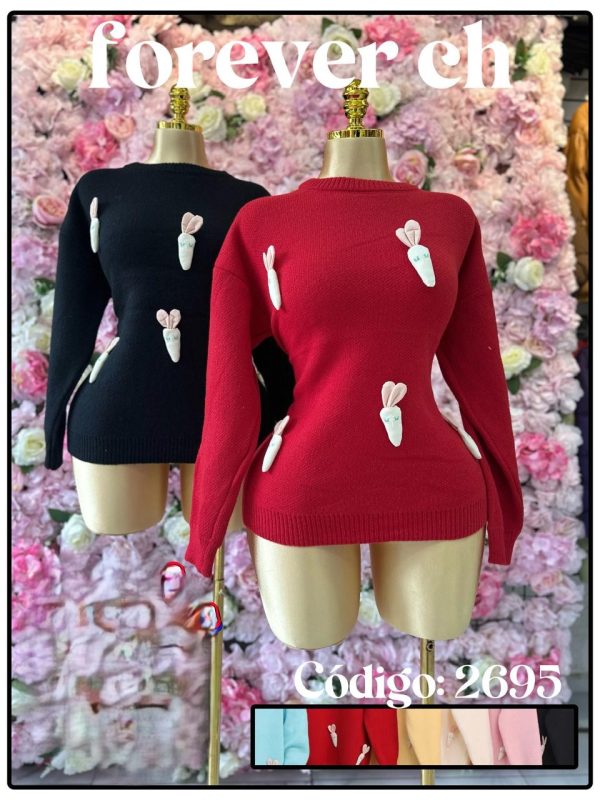 Suéter con bordado floral en mangas