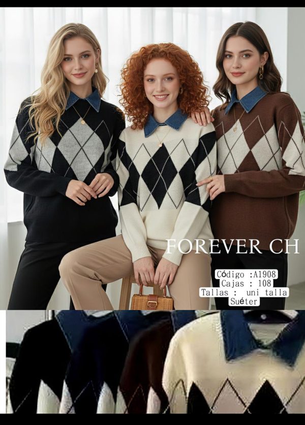 Suéter con diseño de rombos y cuello camisero