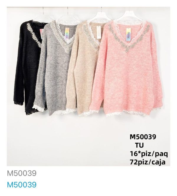 Suéter V con Encaje y Pedrería