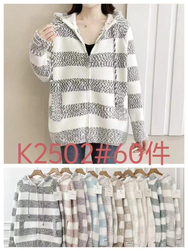 Suéter tejido a rayas con cremallera