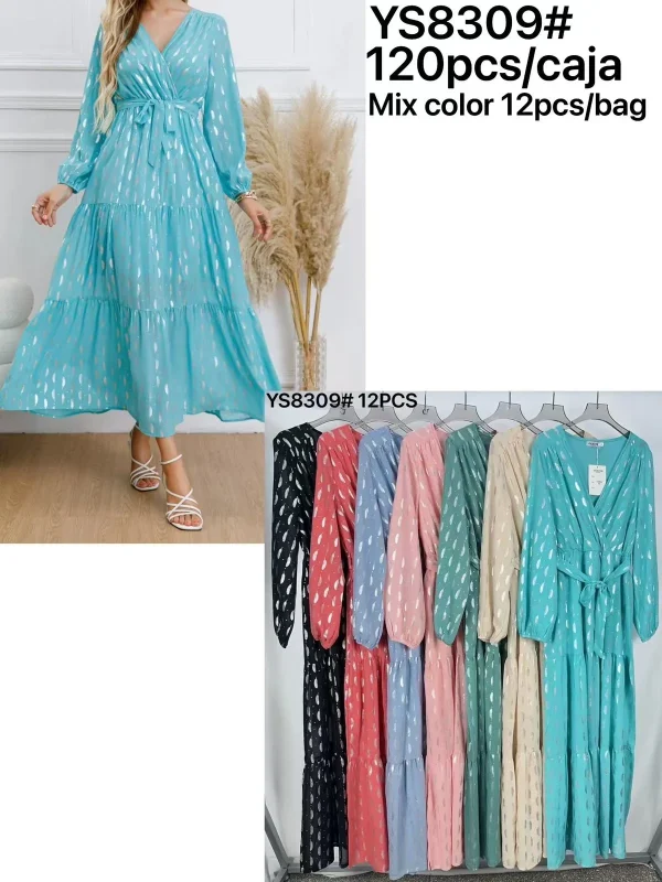 Vestido largo con estampado de lunares