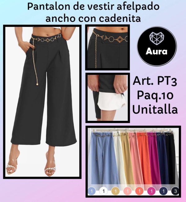 Pantalón de vestir afelpado ancho con cadenita
