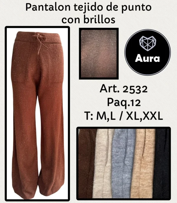 Pantalón tejido de punto con brillos Aura