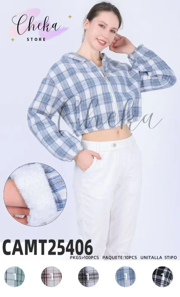 Chamarra crop a cuadros