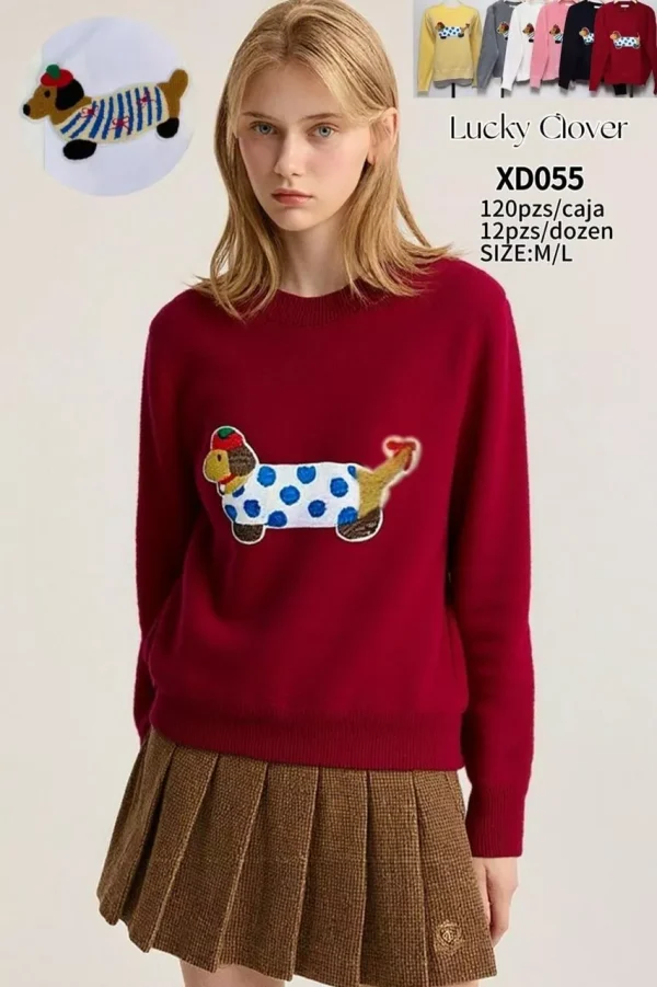 Suéter con bordado de perro salchicha