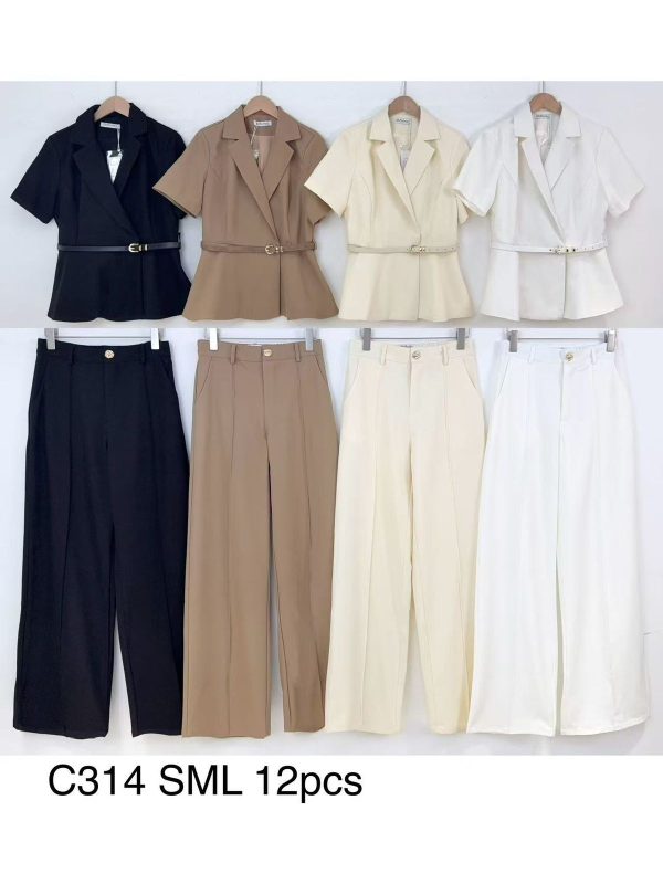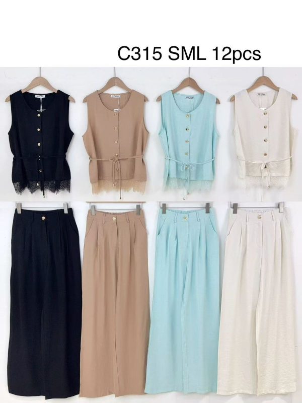 Conjunto de blusa sin mangas con cinturón y pantalones palazzo