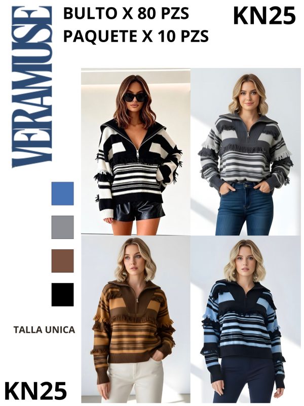 Suéter con cremallera y flecos