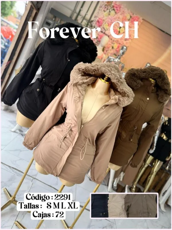 Chamarra con capucha de pelo sintético para mujer