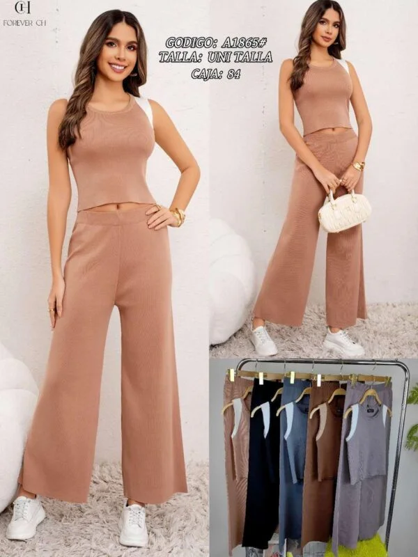 Conjunto de top y pantalones de punto acanalado