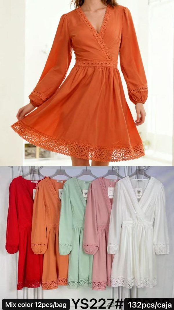 Vestido cruzado con cinturón y mangas largas